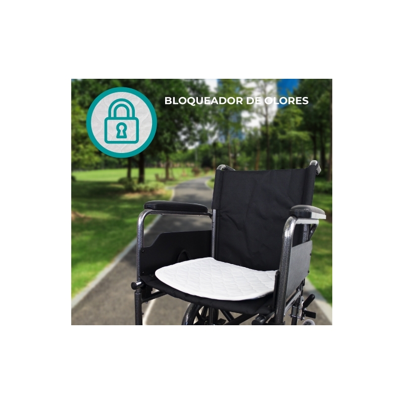 Este pack de 3 empapadores reutilizable para silla de ruedas puede utilizarse en caso de enuresis y en situaciones de sudoración excesiva, ya que evita el exceso de humedad en la piel del paciente. Se trata de un protector empapador de silla transpirable, lavable, impermeable y de fácil colocación y ajuste sobre la silla. Gracias a su composición de 4 capas se consigue una correcta absorción de líquidos y fluidos, manteniendo la piel del paciente limpia y seca.