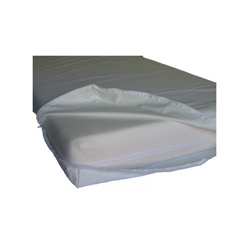 Funda de colchón que cubre el colchón completo, de tejidos transpirables que dejan pasar el vapor de agua, consiguiendo efecto antiácaros. Fabricado en 50% de poliéster y 50%algodón, blanqueado con recubrimiento de membrana de poliuretano microporoso, impermeable y transpirable. Lavado en medio acuoso 95º y/o esterilizable. Dimensiones: 80 x 190 cm