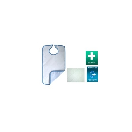 Babero para adulto de ortopedia. Se recomienda su uso en personas mayores y ancianos para proteger de las manchas durante los cuidados, comidas u otros. Aporta confort, absorción e higiene. Su sistema de cierre mediante corchetes permite una mejor sujeción. Además al no ser desechable lo podrás usar una y otra vez y lavarlo hasta 300 veces. La calidad de sus materiales permite una rápida y eficaz absorción de hasta más de 1 litro; no es antideslizante por lo que olvídate de las manchas mientras lo estés usando.