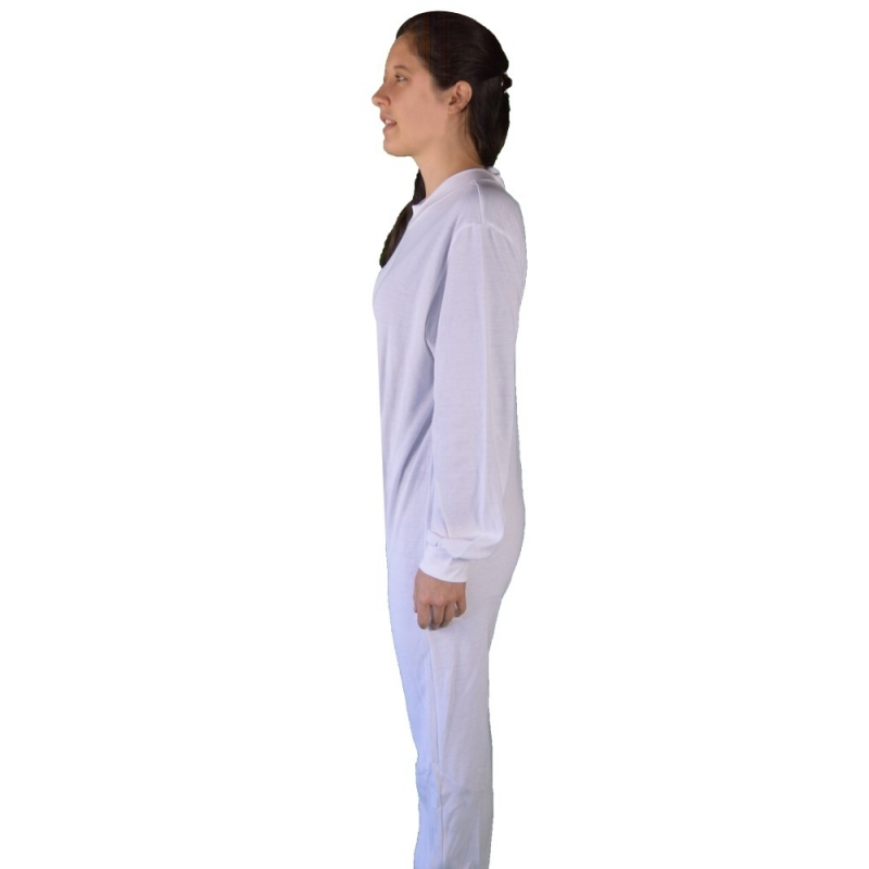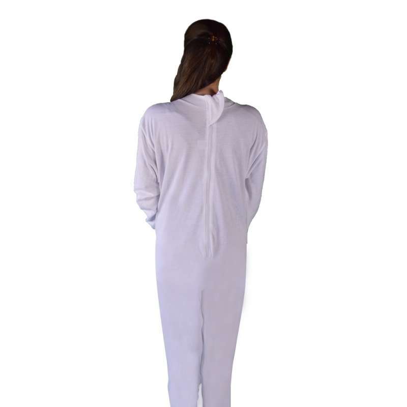 UNA SOLA PIEZA: el pijama está compuesto de una sola pieza y sus cremalleras están en la parte interior de la pierna, lo que evita que el paciente pueda acceder a ellas fácilmente