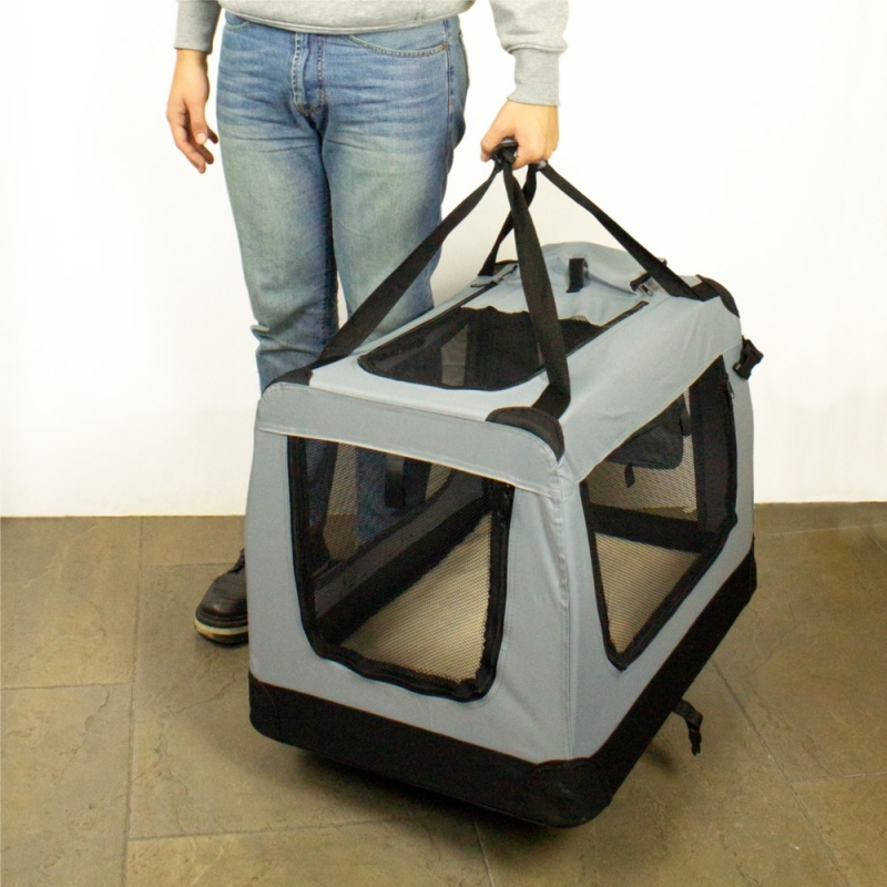 Este bolso para mascotas se puede abrir y cerrar mediante cremallera. Lo que facilitará la salida y entrada al animal. Además tiene asas acolchadas, perfecto para viajar con tu perro o viajar con tu gato y trasladarlo de la forma más cómoda posible.