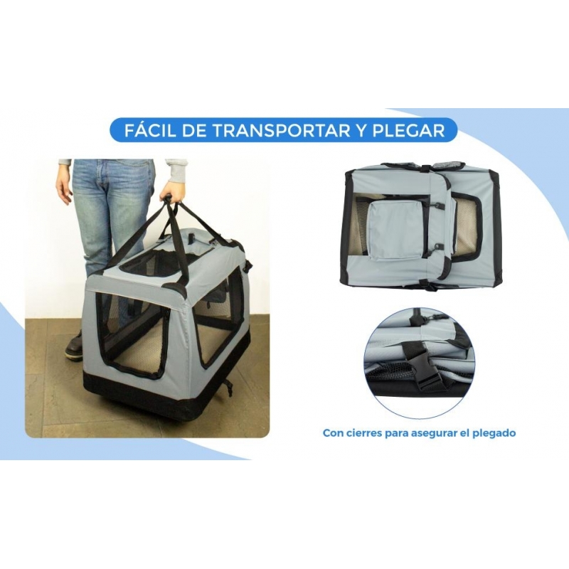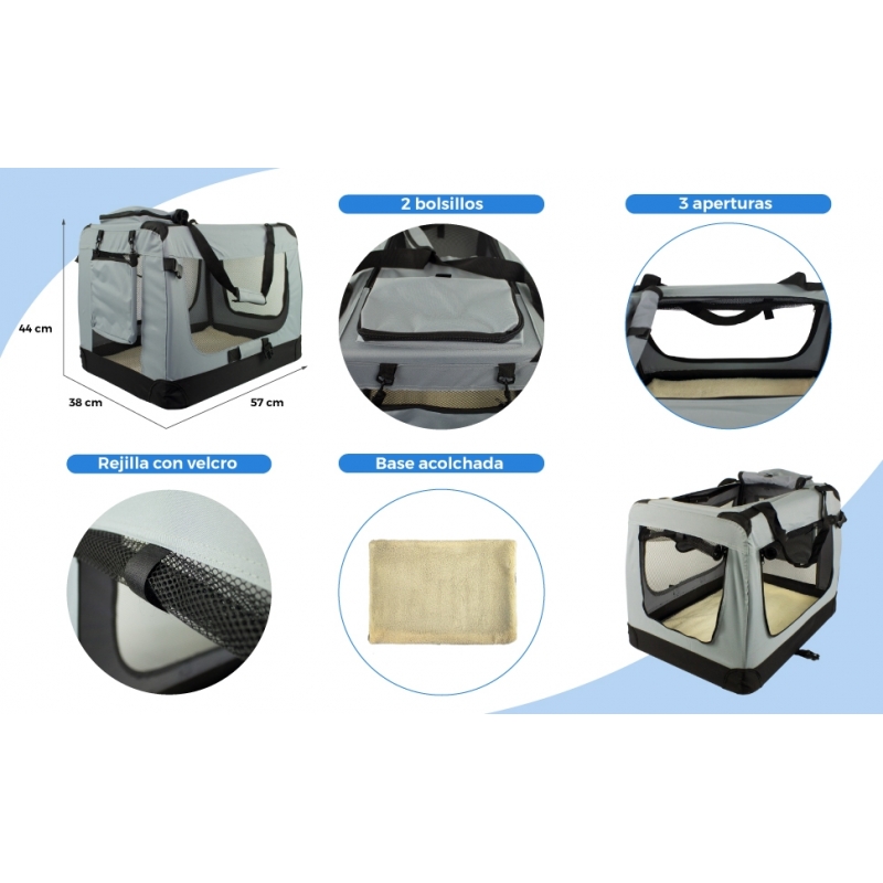 Su diseño es moderno, la bolsa de transporte es ideal para transportar a tu perro o gato con seguridad, pero también como cueva para descansar dentro de casa. Este trasportín cuenta con un cojín suave donde puede descansar el animal y dos bolsillos portaobjetos donde podrás transportar los accesorios de tu mascota con total comodidad. Disponemos de distintos transportines para perros o transportines para gatos que además los puede encontrar en distintos colores y tallas. Garantiza la comodidad de tu animal en el coche y disfruta del viaje.