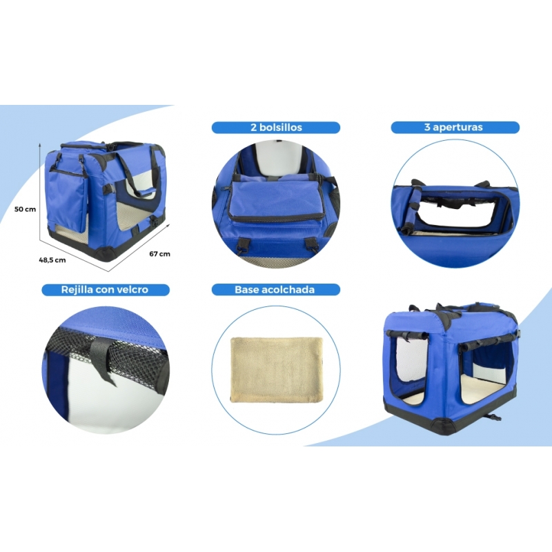 Transportín para mascotas | Varias tallas | Diferentes pesos | Plegable | Azul | Balú | Mobiclinic