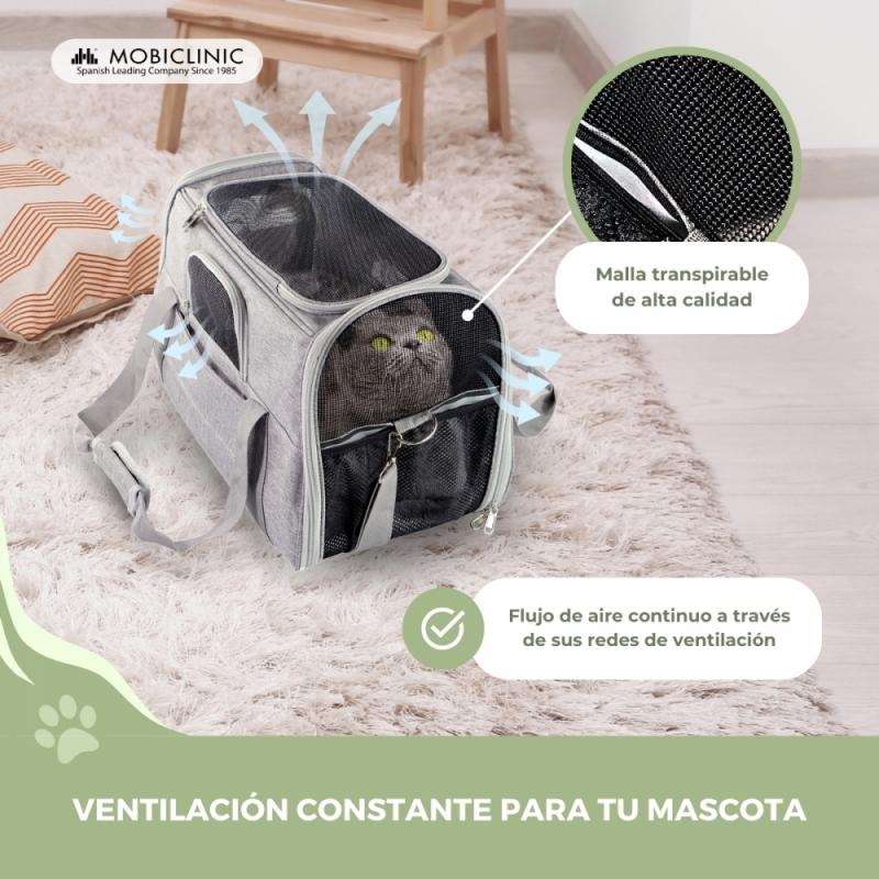 VENTILACIÓN CONSTANTE: Gracias a sus redes de ventilación en todos los laterales y en la parte superior de la bolsa, el flujo constante del aire hacia el interior está garantizado para que tu mascota pueda respirar correctamente. Además, también permite una mayor visibilidad.
