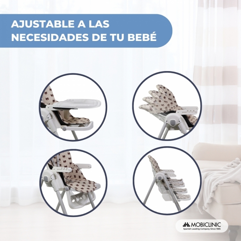 • Su versatilidad: la trona ofrece gran variedad de ajustes según la necesidad específica del bebé, tanto para darle de comer de pie como en diferentes asientos.