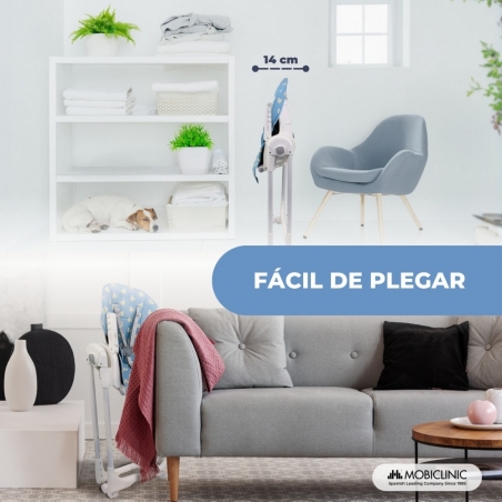 Este modelo completamente plegable y versátil ocupa poco espacio y dispone de ruedas con frenos para un mejor y más cómodo transporte. Ofrece multitud de posibilidades como asiento gracias a su diseño, de manera que el niño se incorpore de forma progresiva a la mesa y aprenda a utilizar los cubiertos, por ejemplo.